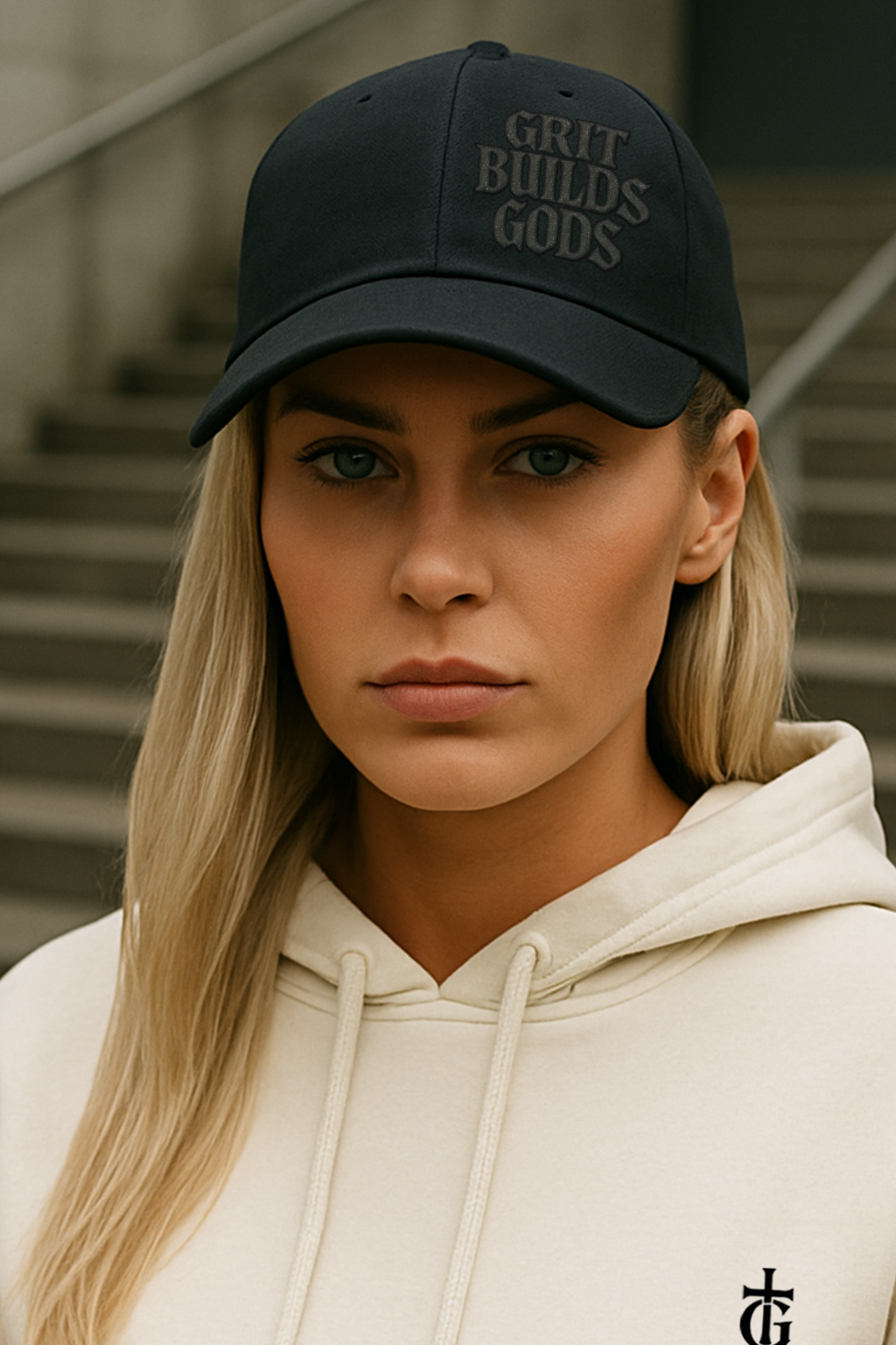 The GBG Trucker Hat is a no-compromise staple from the first Saint Gravitas capsule. Featuring our stacked GRIT BUILDS GODS mark, this piece is a quiet storm—blacked out, battle-ready, and designed to speak without saying a word.