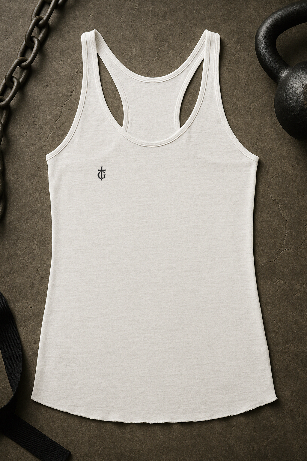 The SG mark sits clean on the right chest—a quiet nod to the creed—while the back carries your reminder at the nape: The Weight Is The Way. Whether you’re chasing the barbell, the road, or your own next horizon, this tank wears like armor you actually want to live in. Available in Black Heather, White, and Red.